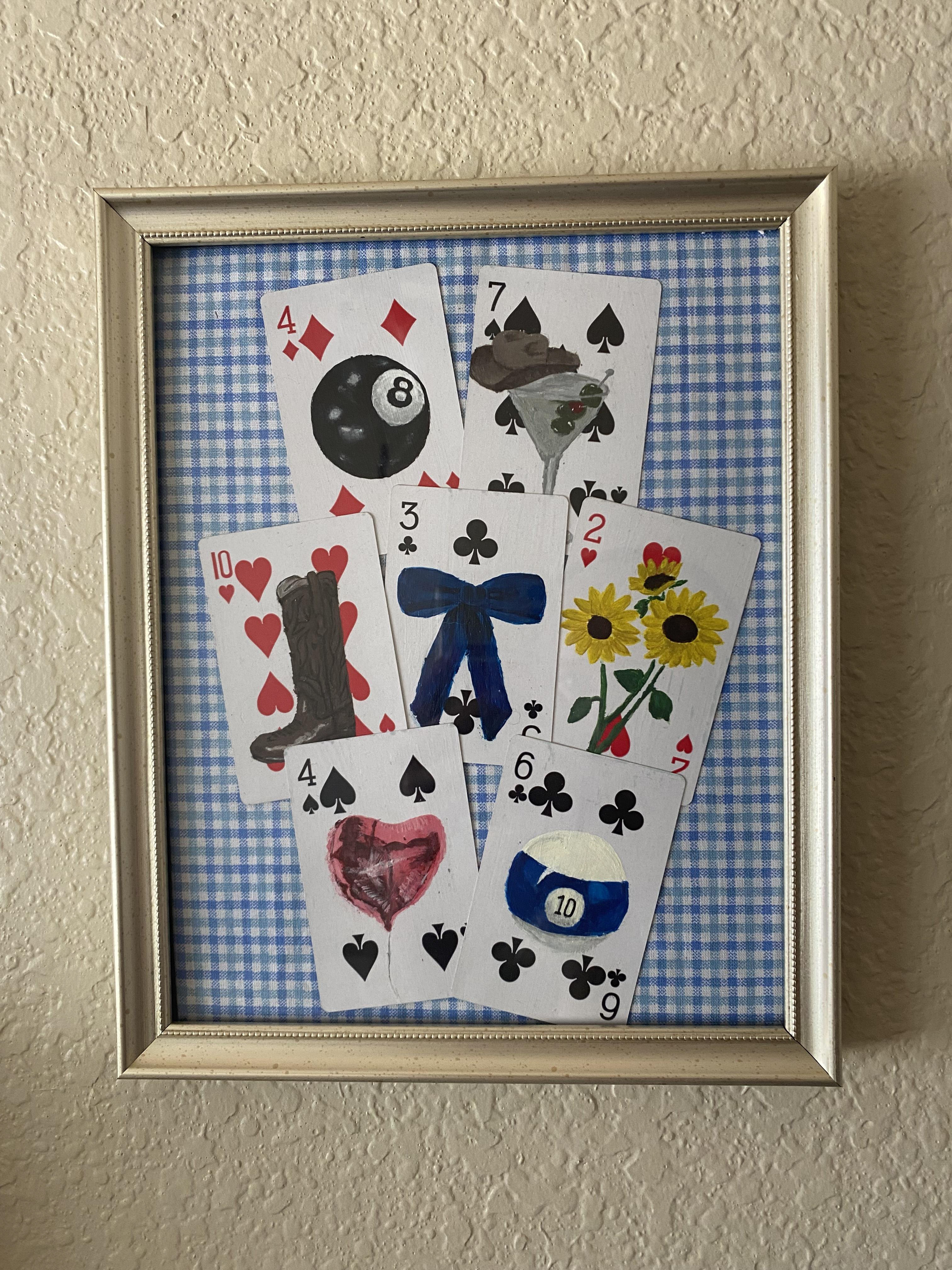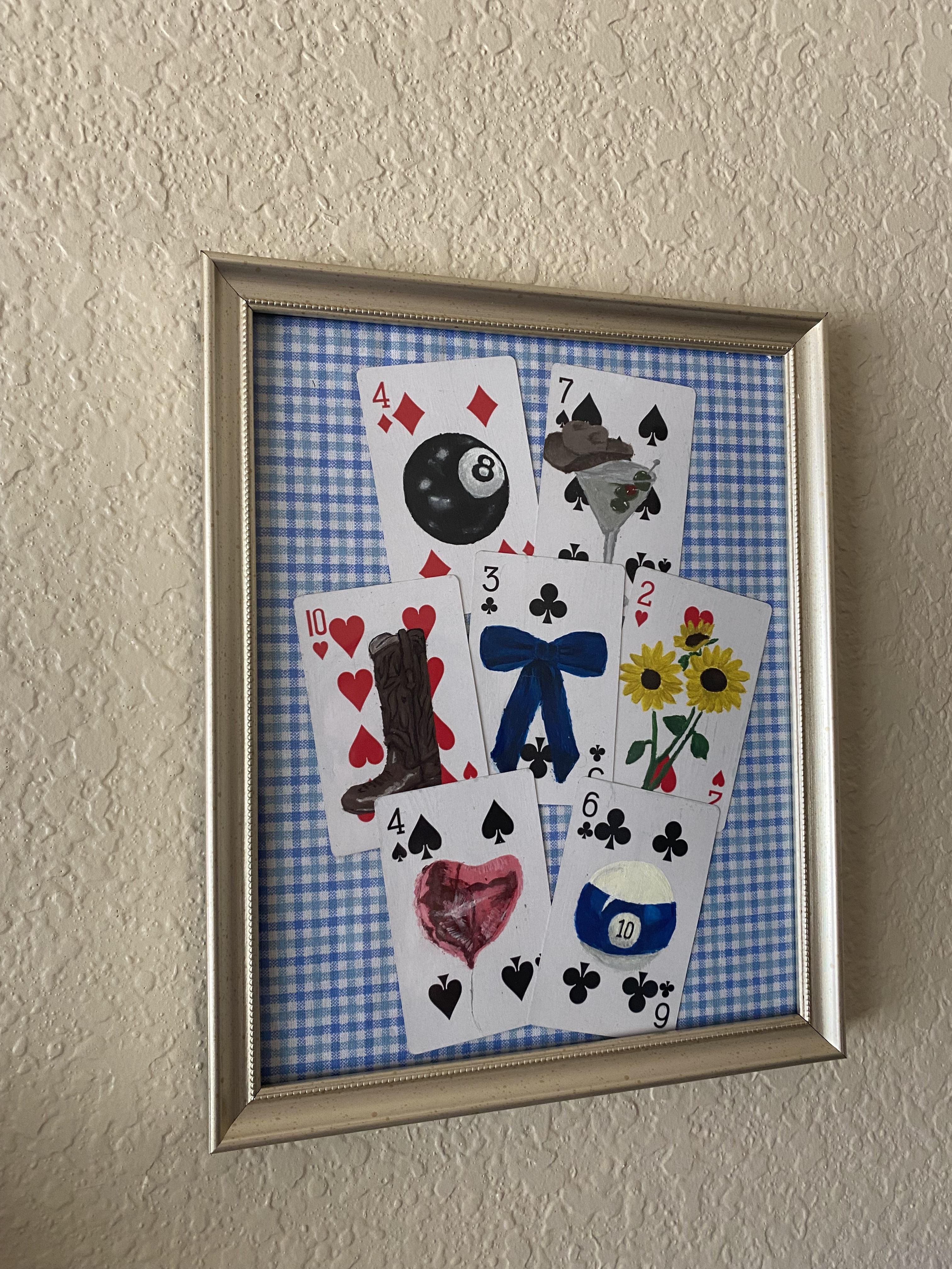Playing Card Painting Series Collection, 2024, framed with fabric backing, 8 x 10 in