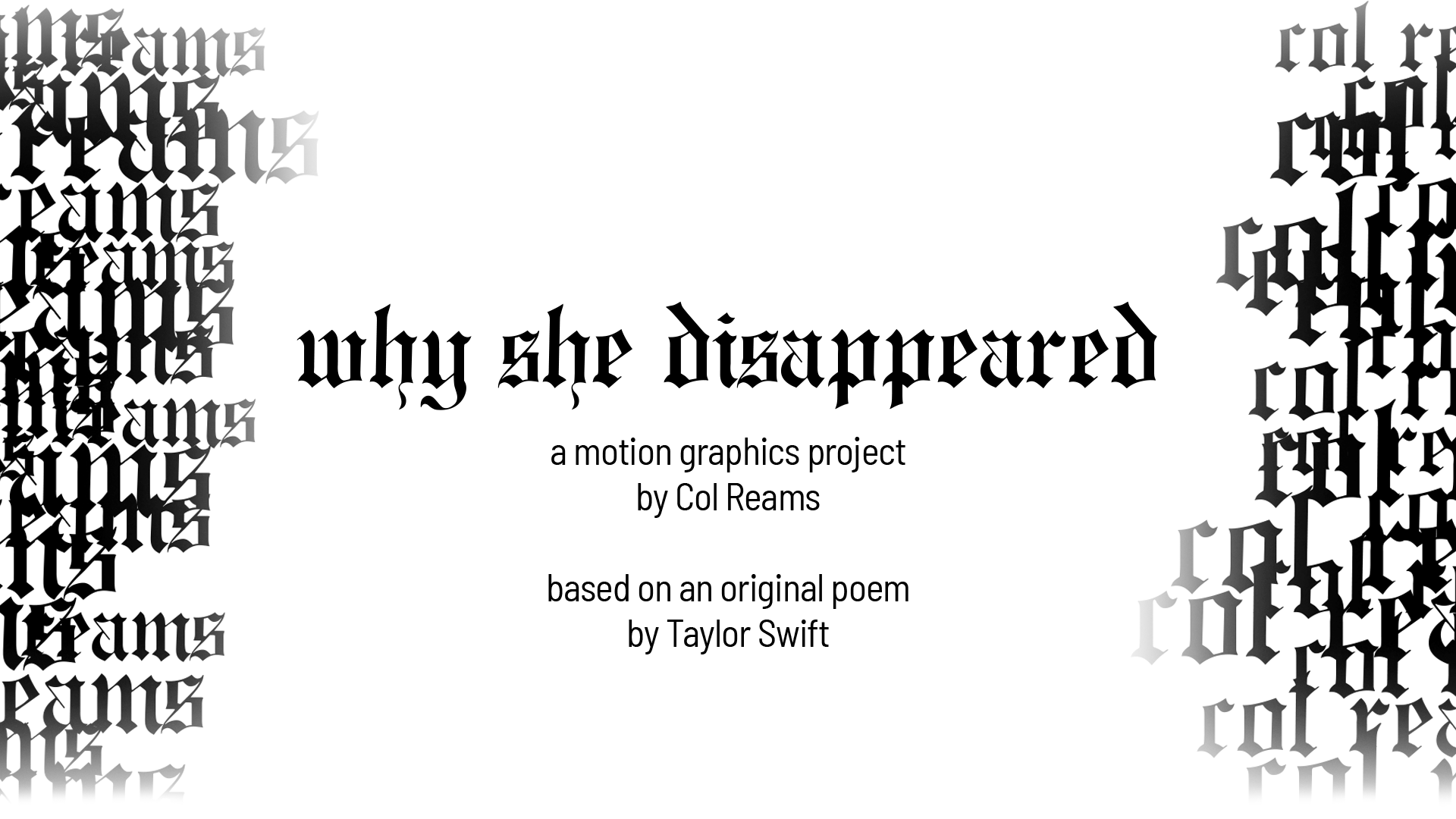 The professor also showed some examples with poems earlier in that semester, and I thought that would be a good fit for a final project for me. I knew of a poem I liked that was written by Taylor Swift, and that's what I chose.