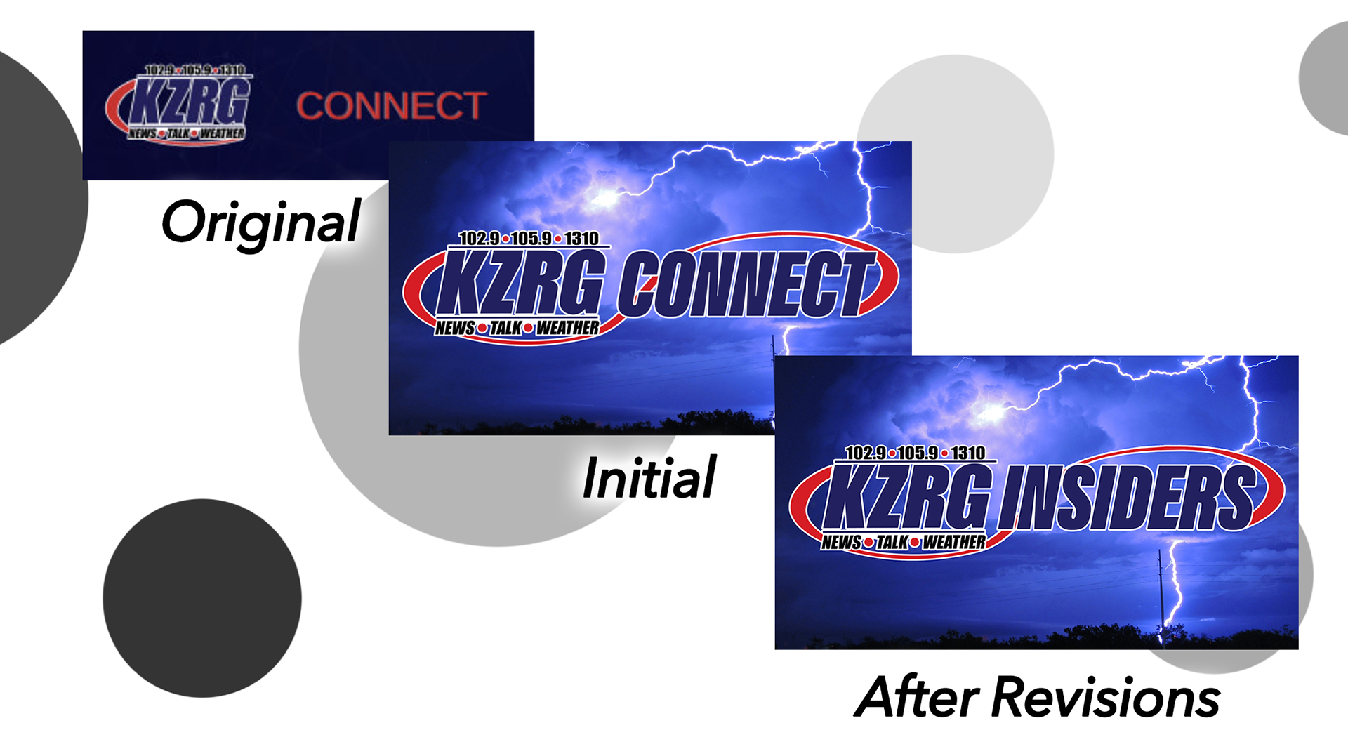 The different logos for the radio stations were provided to me already. Background images were saved from Unsplash, and were modified slightly with different colors, rotation, etc. to fit the station better. Custom logo assets were made myself.
