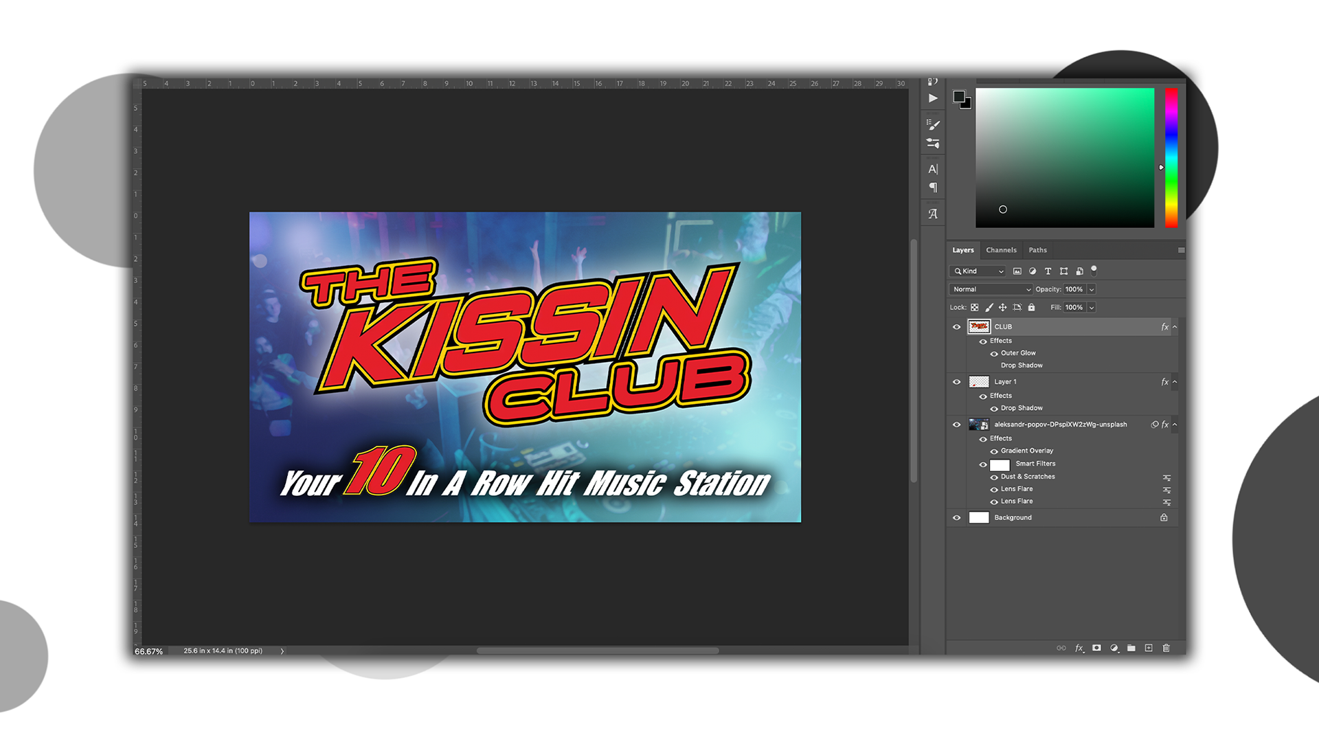 The Country Club image was a bit difficult as well, as I didn't really listen to country. The original background image was just cowboy boots. Mark advised me to switch it to something more modern, something like a club but not exactly. I then settled on an image of a crowd I thought would fit. Lots of people, backwards caps, it felt country to me, and Mark agreed.